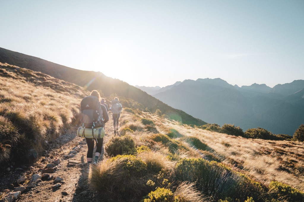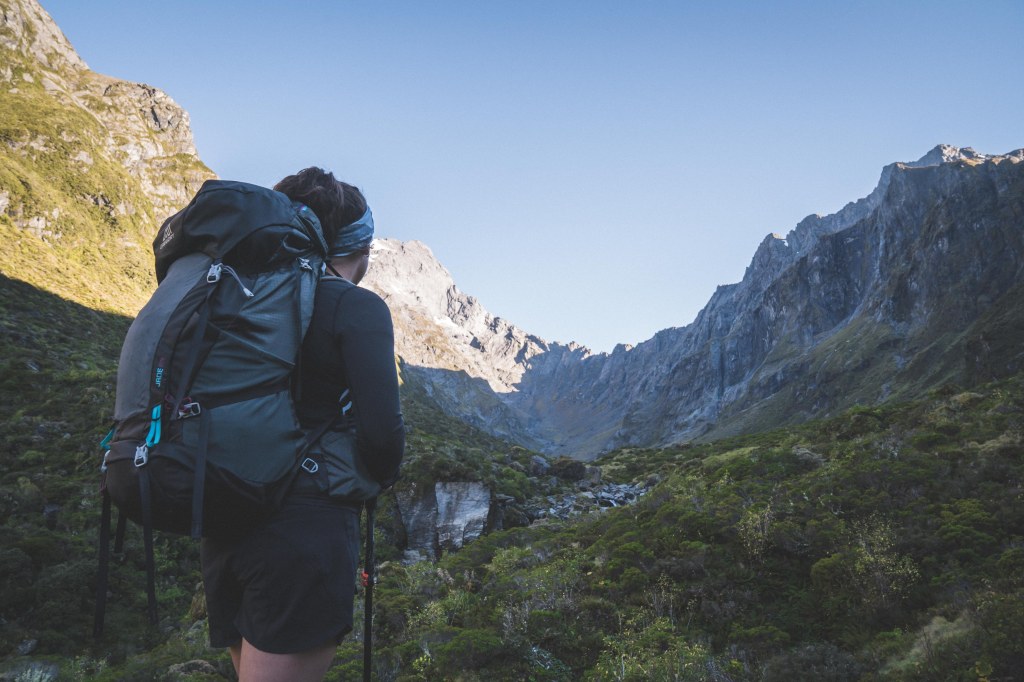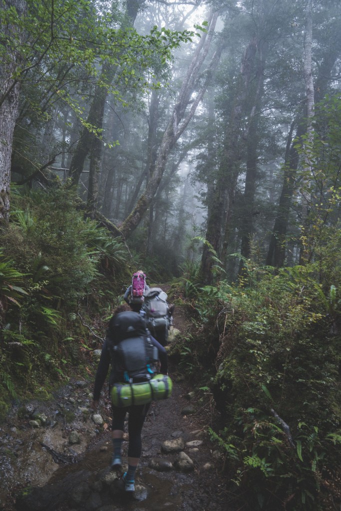 The next day, we took our time getting up in the morning, had some oatmeal for breakfast and then packed up to head off on the next seven hours of our journey. We knew that the second day was going to be the hardest – we had read that we’d start off walking through the forest up the bushline, where we’d come out into a beautiful alpine bowl looking up at Mt. Awful (real name), before taking on a steep scramble to the top of the mountain. After that, we’d encounter a long downhill into Siberia Valley, before finishing with an hour walk through the valley to Siberia Hut.