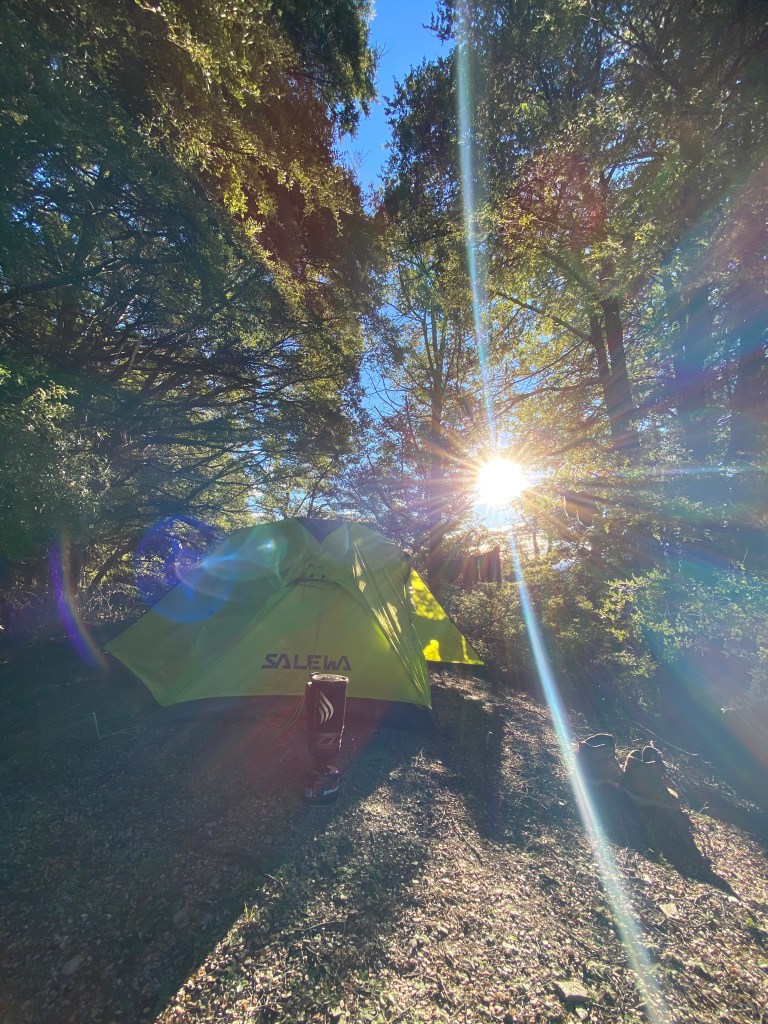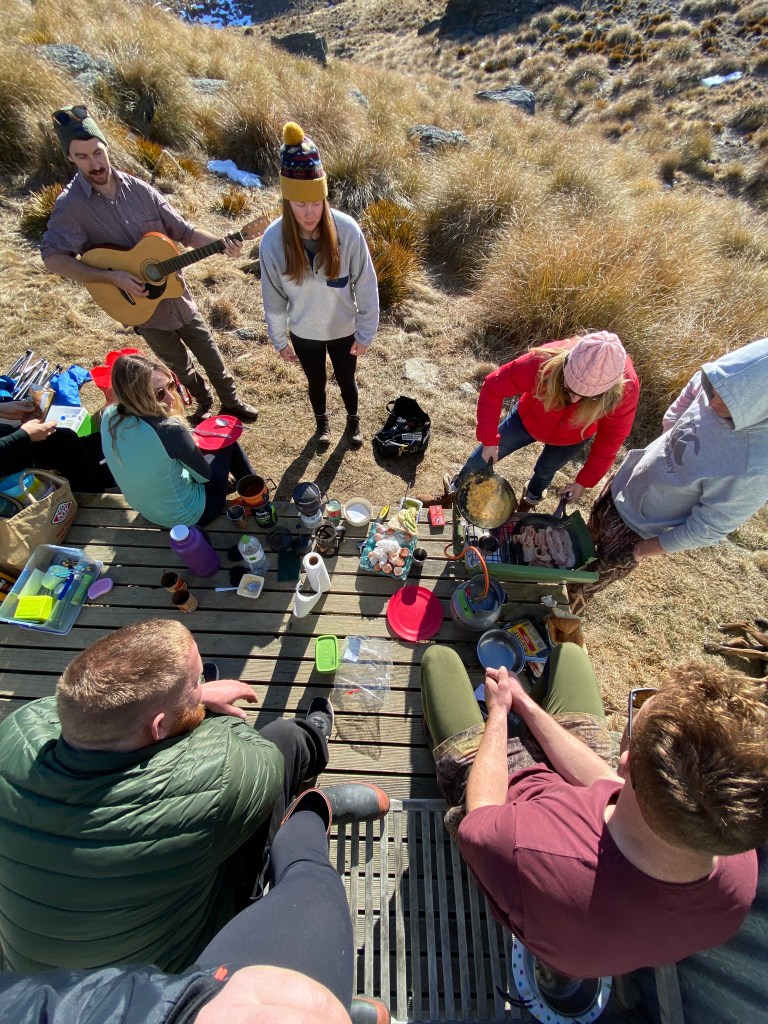 From there, we started the 20km into the bush towards the first hut. The first day of hiking was actually pretty cruisey, with a few grunty sections of forest stairmaster. Just enough to get tired, but not enough to kill you. When we arrived at Young Hut at 3pm, we felt somewhat accomplished for the day and cracked into our mini charcuterie board.