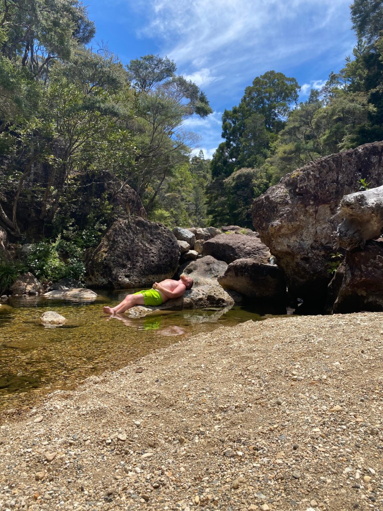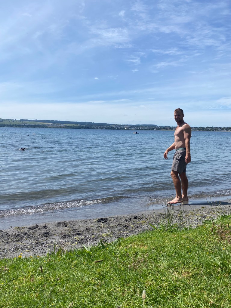 I told him that it meant a lot to me that he even thought of it, but that I was having a great Christmas, even without a breakfast. Then I cried for a bit, but mostly out of love, not sadness. Once I cleaned myself up, we went back upstairs and joined in more of the games. We then opened presents and had Christmas lunch (Christmas dinner isn’t really a thing here, Kiwis all do lunch). In the afternoon, Fraser and I took our bikes down to the lake, had a swim and threw a stick for Hooch. It was such a beautiful day and I just felt really happy to be there with him.