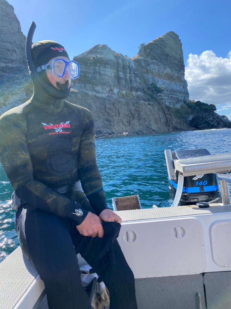 Fraser and Andy went down a night before we did and by the time we arrived, they had already been diving and hunting, managing to pull a bunch of paua for dinner and a stag that Fraser had shot while they were out hunting.