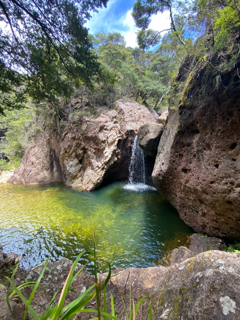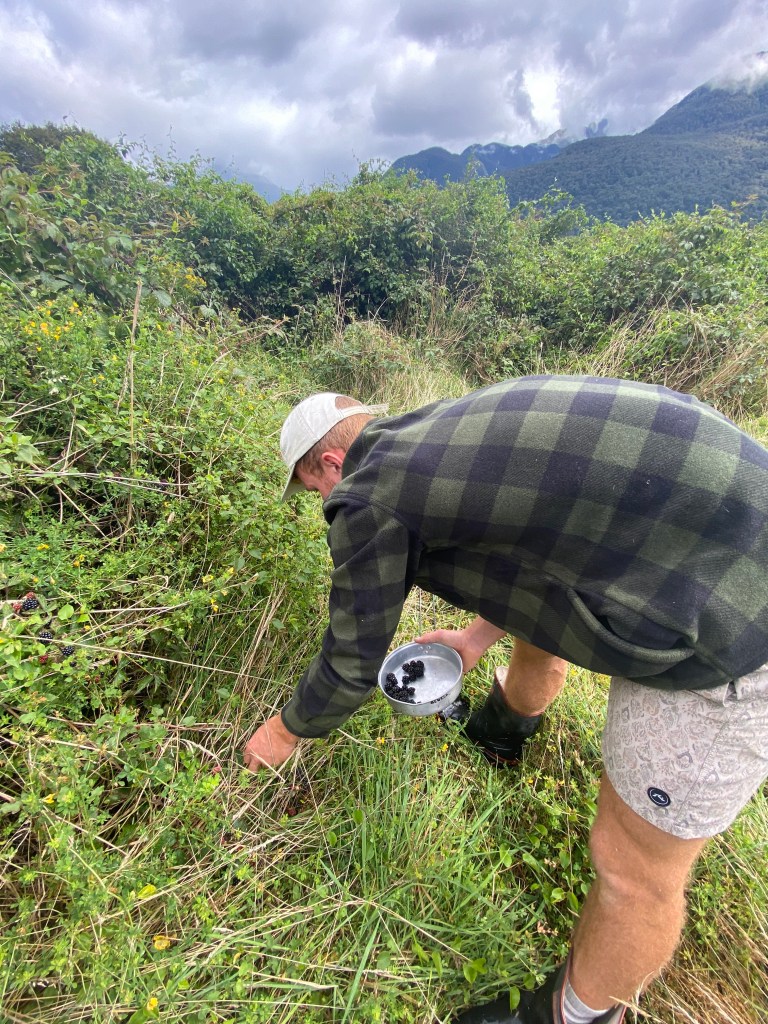 On the Sunday, we got a bit of a break in the weather, so Fraser, Andy and I went 4x4ing down along the West Coast in an area that Fraser wanted to scope for hunting. We ended up finding this little hut in a beautiful field filled with blackberries and the boys went to town foraging. On the way back, we stopped at a roadside waterfall that I hadn’t seen before, even though I’ve driven that road tons of times.