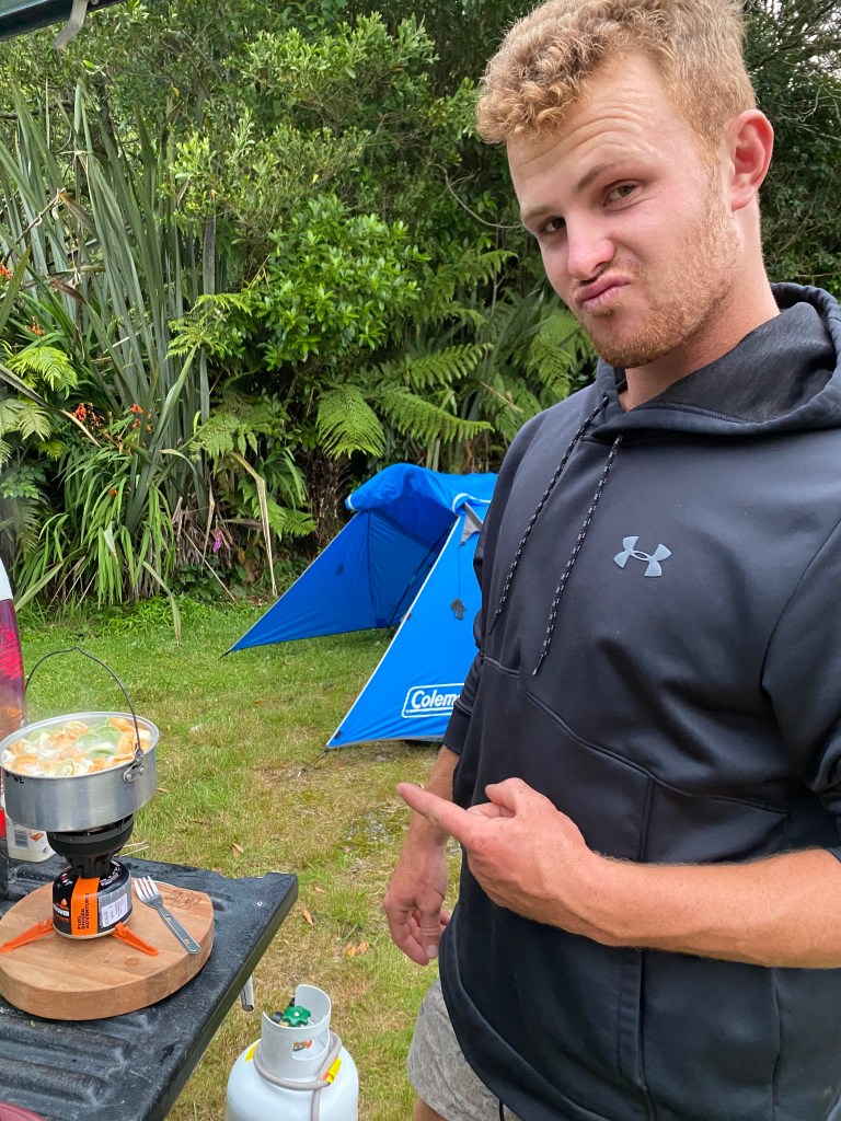 We found this great little campspot with an amazing view of the mountains and set up the tents. For this journey, Mike joined us again, along with Alanna and Billy – an American friend from Queenstown.