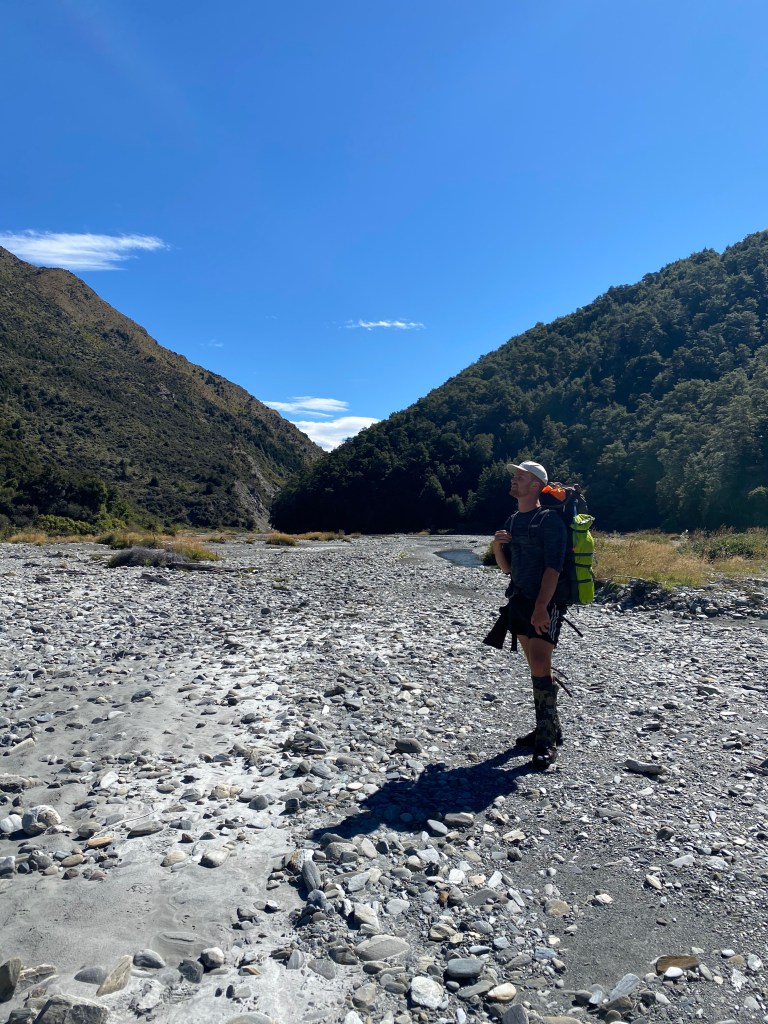 Fraser had been asking me forever to go out with him to scout a hunting block and I finally agreed. We headed up to Timaru Creek, which was just an hour drive from Wanaka and hiked through about 500 river crossings (there was a learning curve there) and up a short climb to a perfect little camping spot on the saddle. Fraser went for a little walk around to see if he could spot any deer sign while I sat on the peak and drank beer, feeling very at peace to be so above all my problems below.