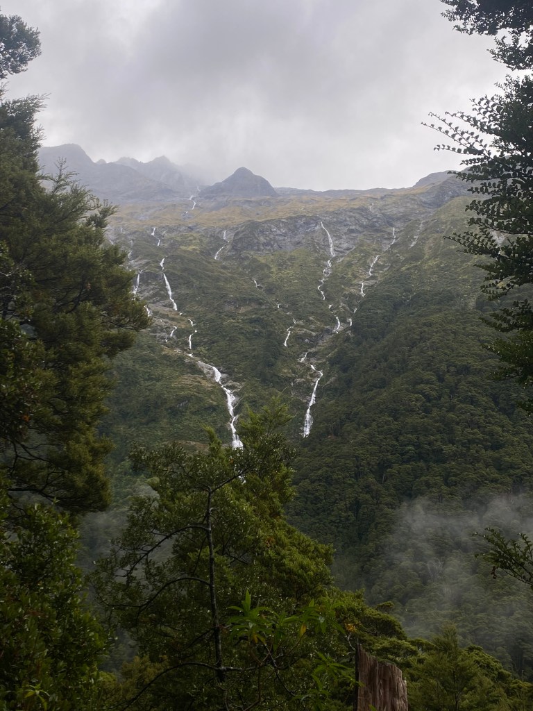 It literally looked that the whole way down to the valley to the Sound – just the most ridiculous waterfalls. When Rachel and I had gone, none of that existed. Even on the way back from the Sound, when the rain had stopped, the waterfalls were noticeably lighter.